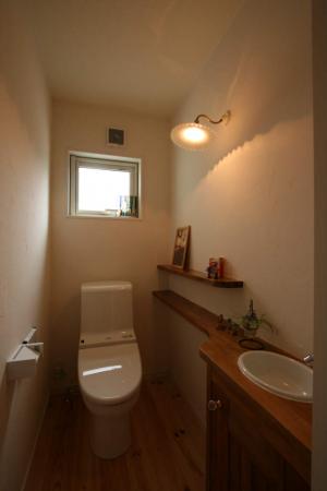 室内飾り窓や廊下の棚、開放感のある天井に見える室内梁、明るく爽やかなお手洗いにあるオリジナル造作洗面がとっても素敵なお家に仕上がりました